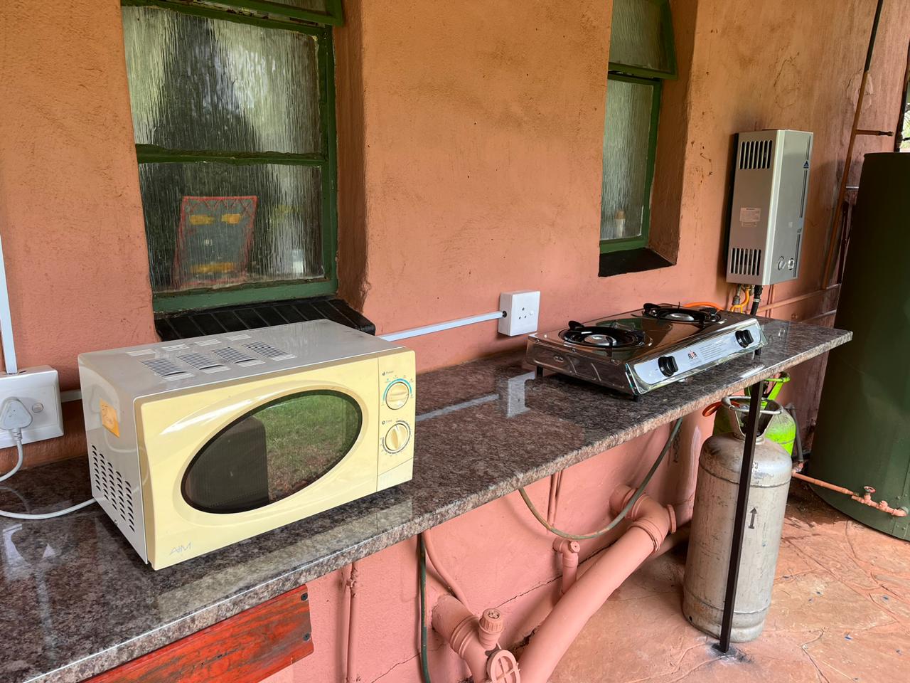 - Fully equipped kitchenette with a fridge – freezer, microwave, kettle, toaster and two plate stove